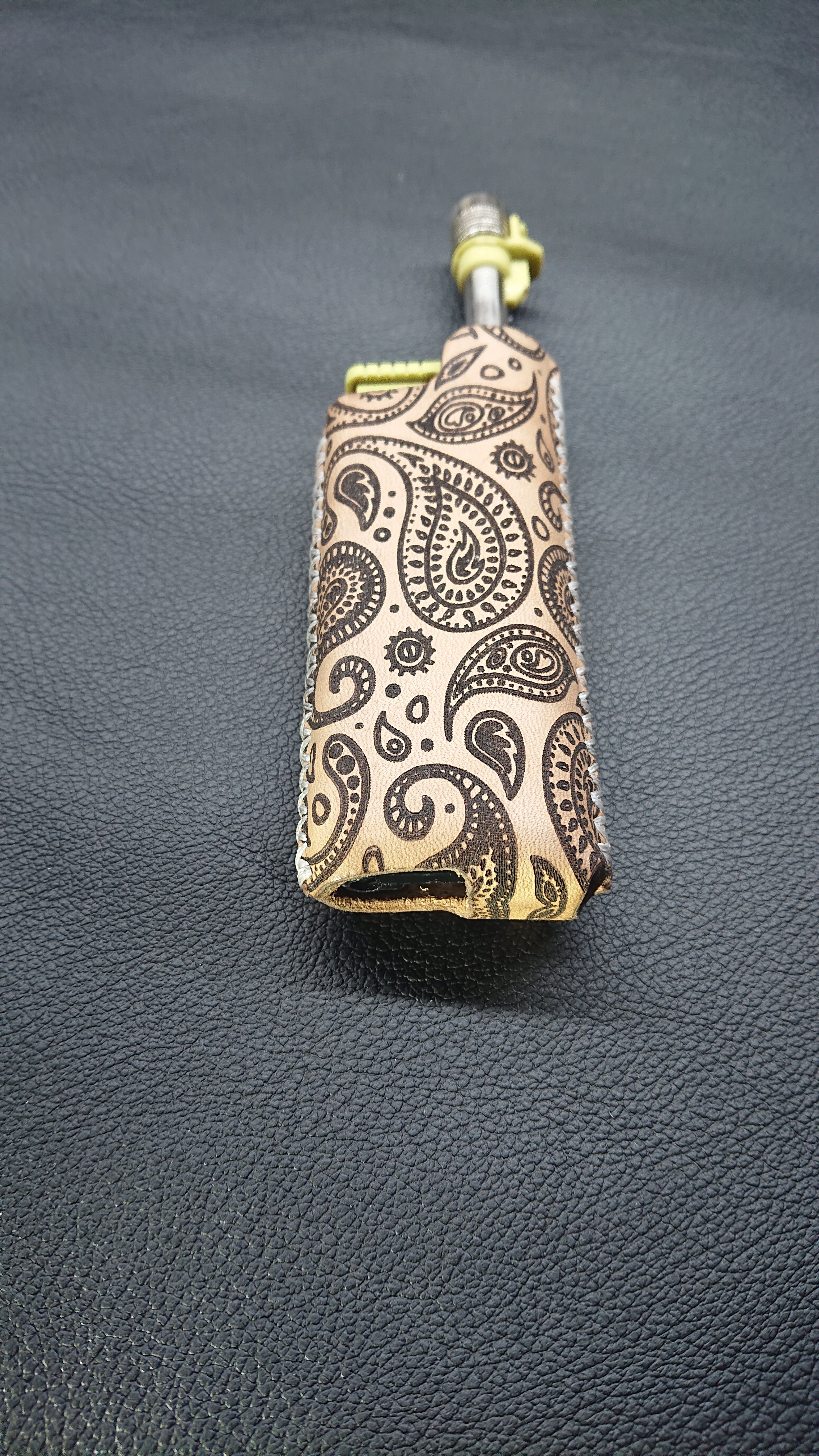 定番のSOTOスライドガストーチ専用のレザーカバーに幾何学的模様を焼印したものです。他のキャンパーのガストーチとは違う個性を求める方にオススメの商品となっています!ウェットフォーム技法を使用し試行錯誤を繰り返して完成した驚くほどのシンデレラフィットに感動する事間違いなしです❗