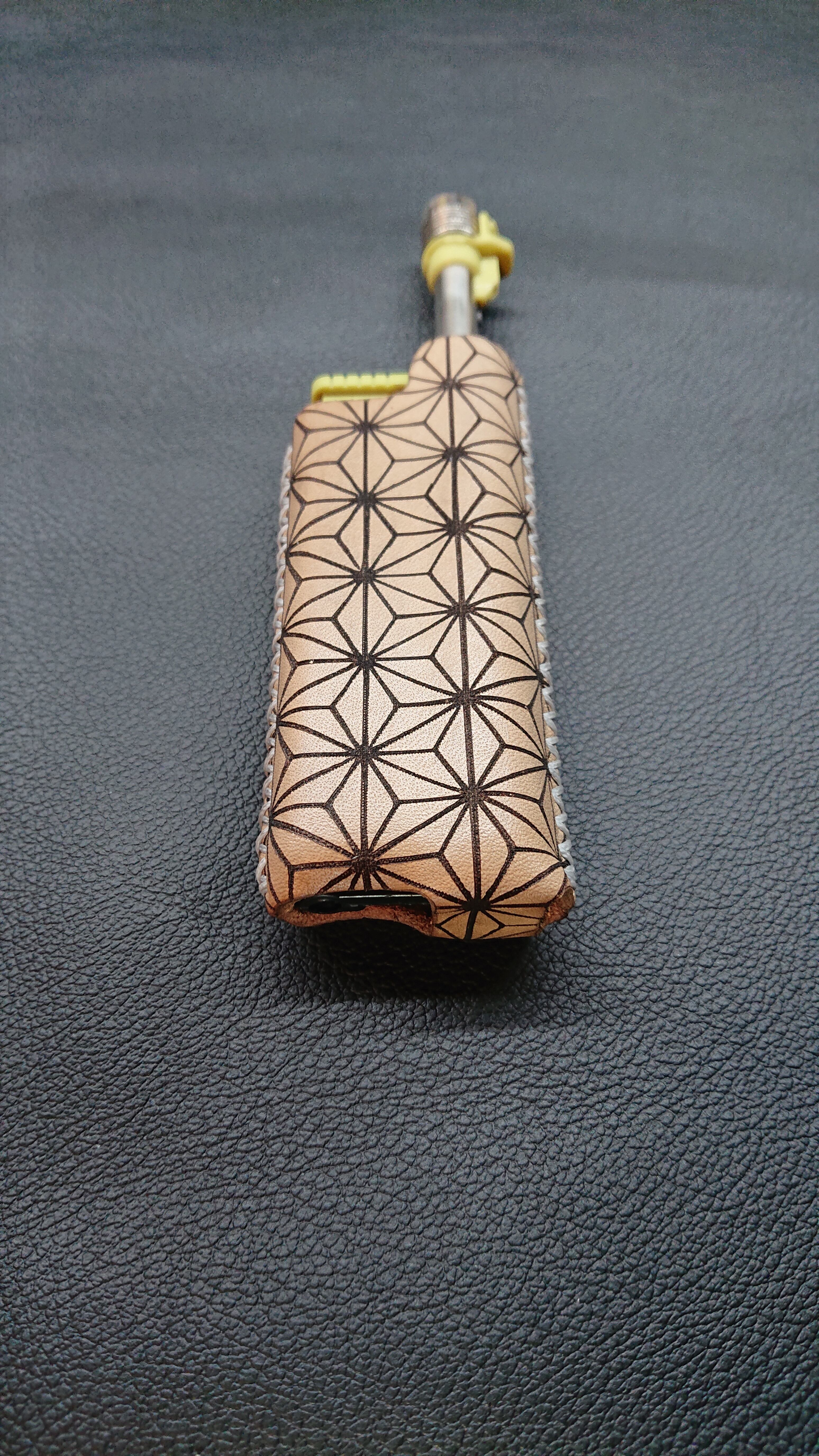 定番のSOTOスライドガストーチ専用のレザーカバーに麻の葉模様を焼印したものです。他のキャンパーのガストーチとは違う個性を求める方にオススメの商品となっています!ウェットフォーム技法を使用し試行錯誤を繰り返して完成した驚くほどのシンデレラフィットに感動する事間違いなしです❗