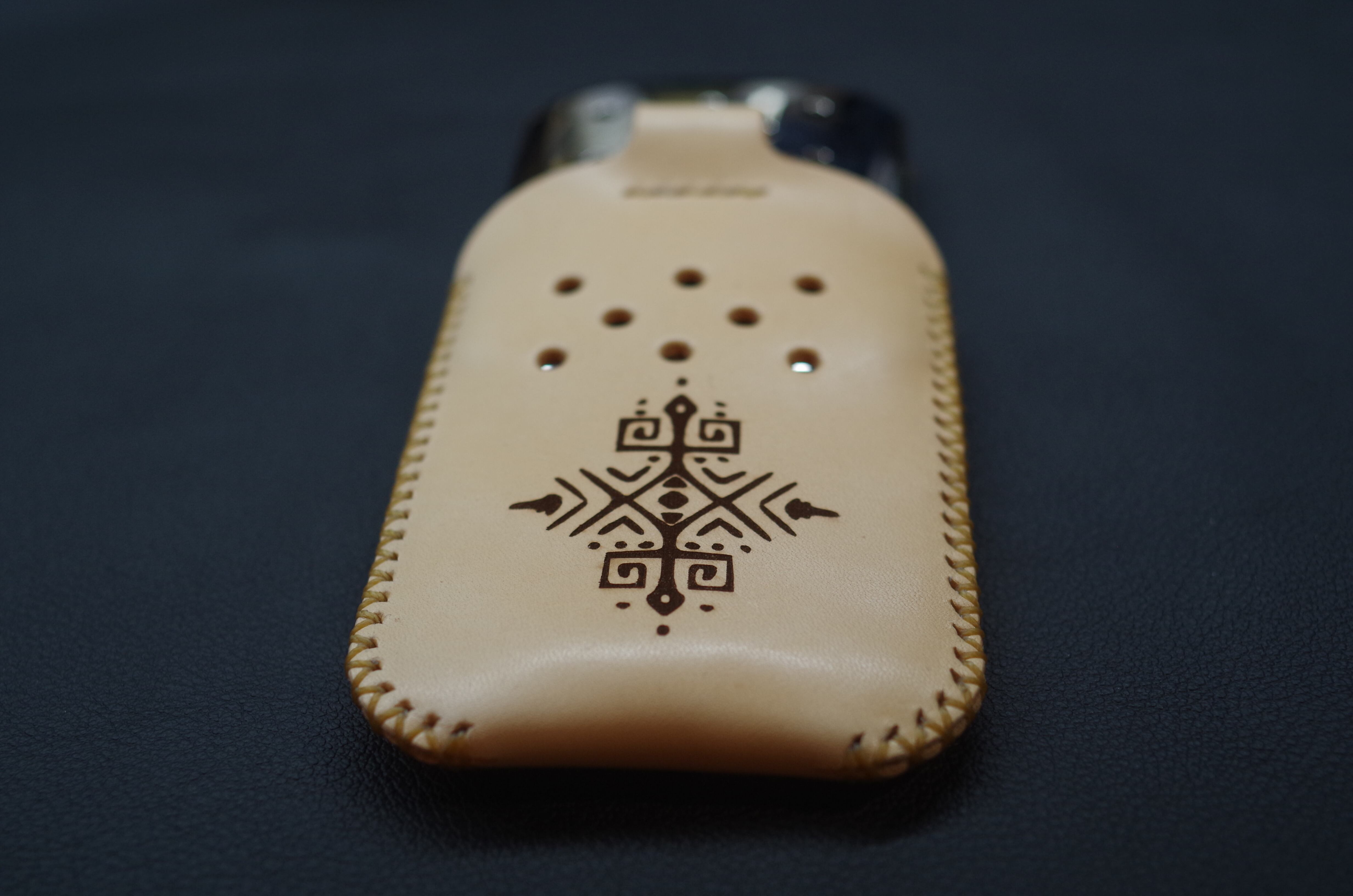 レーザー加工機でオルテガ柄の焼印を施したZIPPOハンディウォーマーのレザーケースです。ZIPPOハンディウォーマーはとにかく温かいんです。ただ付属のケースでは熱くて低温やけどの恐れがあるぐらいなんです。